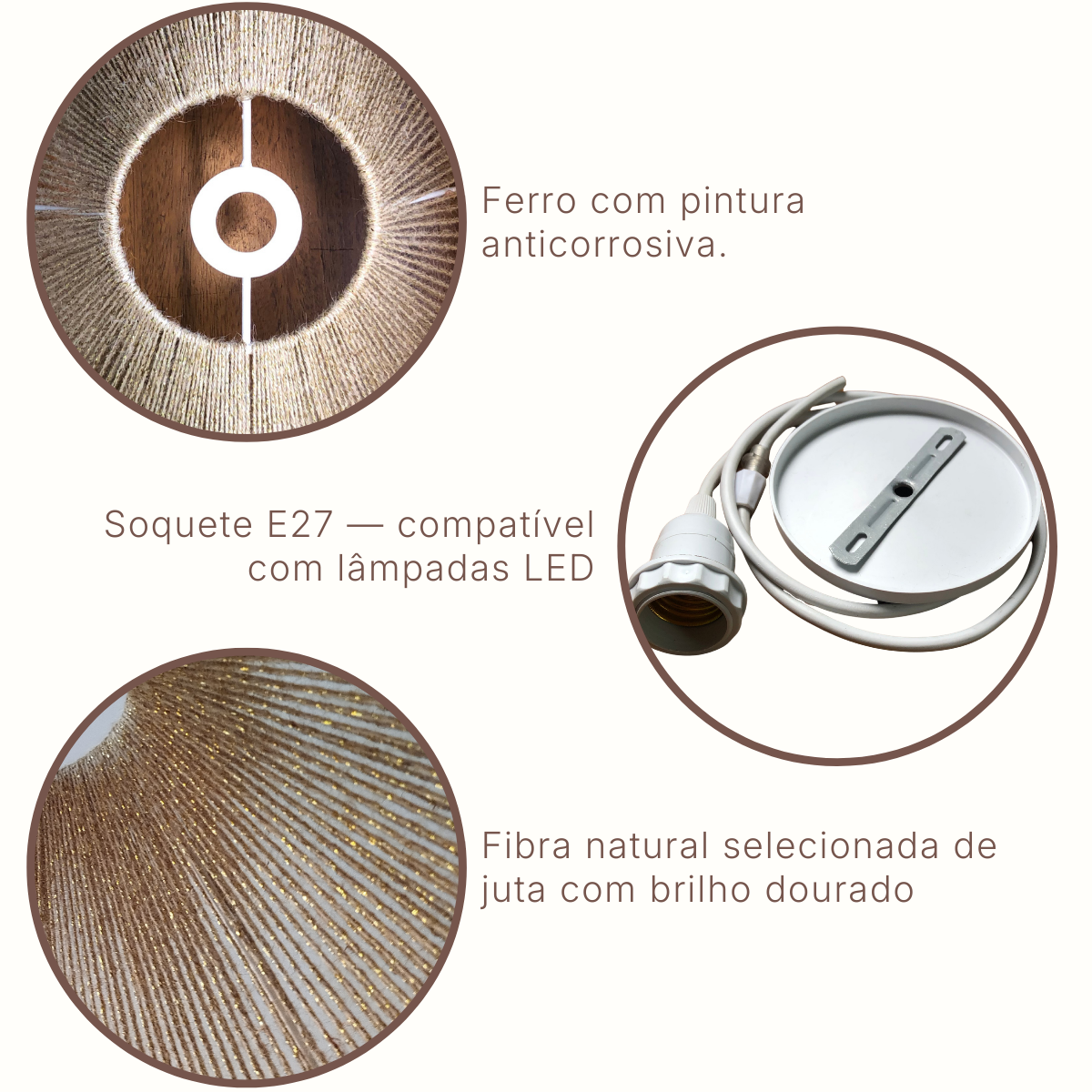 Recomendado uso de lâmpada de luz quente (2700K) para melhor valorização da textura da fibra.